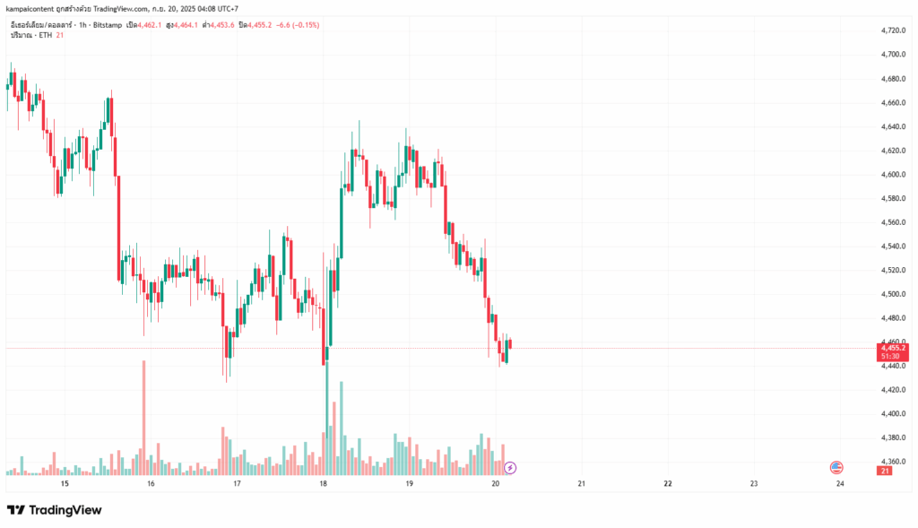 • Ethereum (ETH) แนวต้านระยะสั้นอยู่ที่ 4,550 ดอลลาร์ หากผ่านไปได้อาจไปทดสอบโซน 4,700–4,800 ดอลลาร์อีกครั้ง แต่หากไม่สามารถยืนเหนือ 4,500 ดอลลาร์ ได้ แนวรับจะอยู่ที่ 4,400 และ 4,250 ดอลลาร์