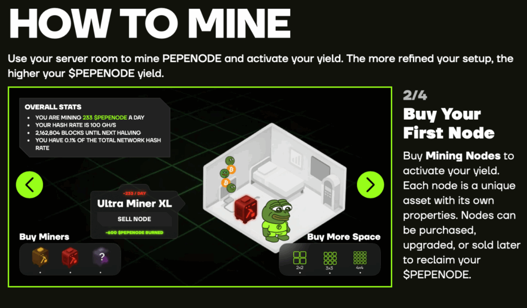 PepeNode ไม่ใช่ทั้ง Cloud Mining และไม่ใช่แค่การ Staking แบบ Passive Income แต่มันคือเกมการขุดเสมือนจริงที่รายได้ขึ้นอยู่กับกลยุทธ์ของผู้เล่น