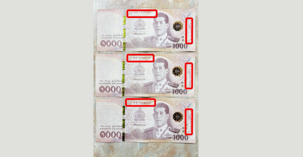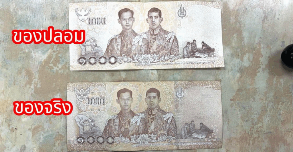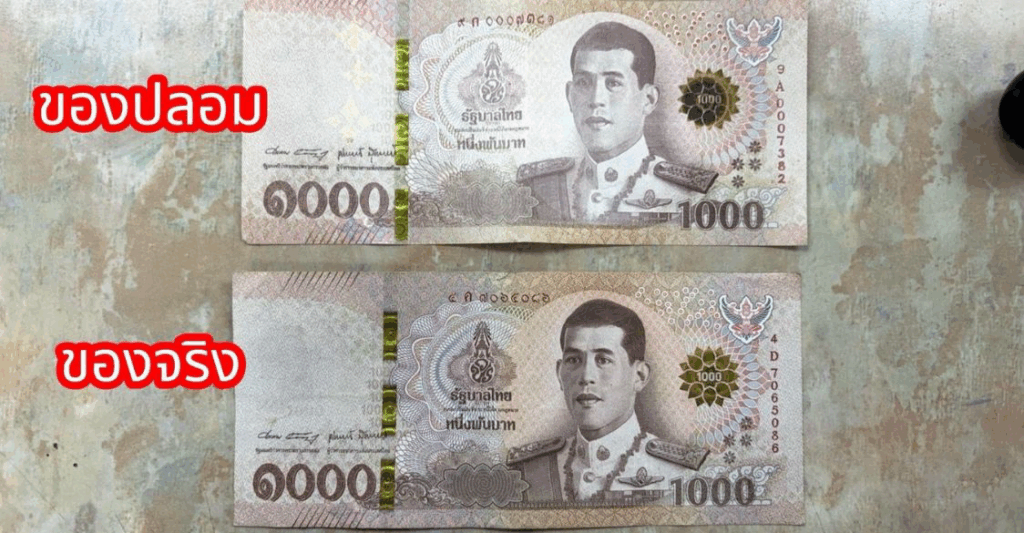 สำหรับธนบัตรปลอมที่พบระหว่างนำเงินเข้าฝากกับธนาคาร พบว่า ทำเลียนแบบได้อย่างแนบเนียนจนแทบจะแยกไม่ออก ทั้ง เนื้อกระดาษ สีของธนบัตรปลอม และยังมีลายน้ำพระบรมสาทิสลักษณ์ที่สามารถส่องมองเห็นได้ มีเพียงหมวดหมายเลขบนธนบัตรที่ตัวเลขไทยและอารบิกจะไม่ตรงกันเท่านั้นที่พอจะสังเกตได้ว่าเป็นของปลอม ซึ่งความแนบเนียนเหมือนจริงทำให้ผู้ที่ได้รับธนบัตรมานำไปใช้ต่อ เสี่ยงทำผิดกฎหมายโดยไม่รู้ตัว