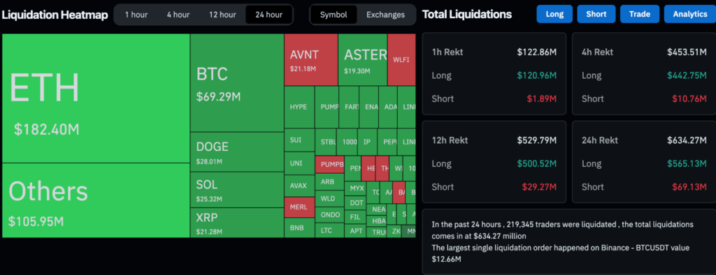 ทั้งนี้ หากนับรวมในช่วง 24 ชั่วโมงที่ผ่านมาจะตัวเลขความเสียหายจะพุ่งขึ้นเป็น $634 ล้าน แบ่งเป็นฝั่ง long ที่ $565 ล้าน และฝั่ง short ที่ $69.1 ล้านดอลลาร์ โดยในวันนี้มีนักเทรดถูกล้างพอร์ตไปแล้วกว่า 219,345 ราย ในขณะที่รายงาน