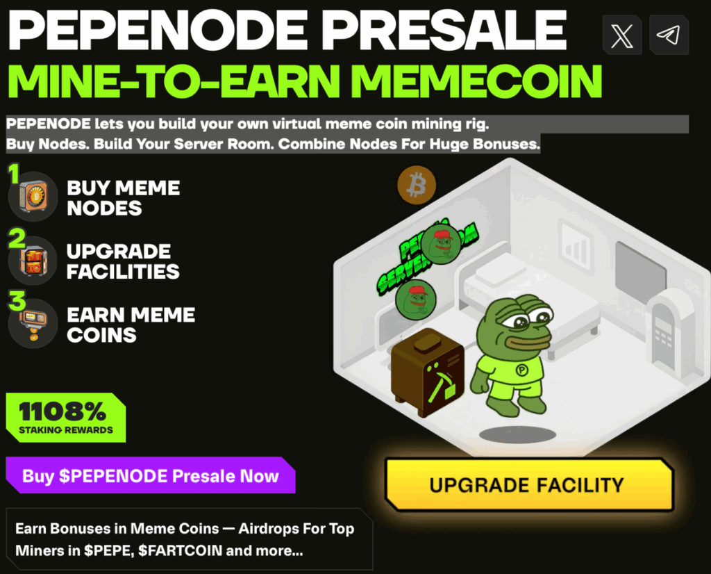 PepeNode กำลังสร้างเกมขุดเหรียญมีมเสมือนจริงที่ผู้ใช้สามารถออกแบบเครื่องขุดของตัวเองเพื่อรับเหรียญยอดนิยมอย่าง PEPE, FARTCOIN และเหรียญอื่น ๆ ได้