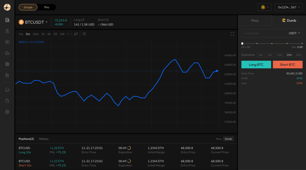 โหมดนี้จะถูกออกแบบมาเพื่อให้ง่ายต่อการใช้งาน โดยทำให้เป็นการเทรดแบบ One-click พร้อม Leverage สูงถึง 1001x ซึ่งเป็นหนึ่งในอัตราที่สูงที่สุดใน DeFi ระบบยังมีการป้องกัน MEV (Miner Extractable Value) ในตัว ปกป้องเทรดเดอร์รายย่อยจากการถูก Front-running และ Sandwich Attack