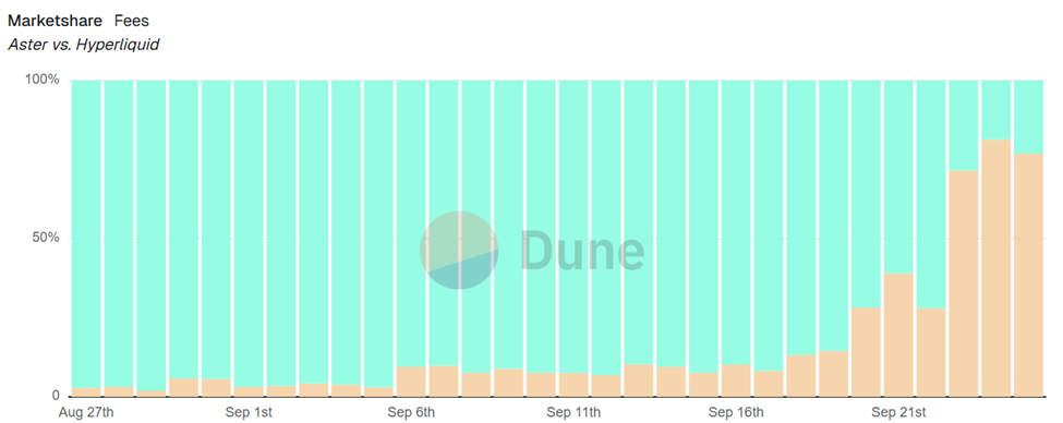 แม้จะมีปัญหาทางเทคนิคเกิดขึ้น แต่ Aster ยังคงแสดงตัวเลขในการเติบโตอย่างที่น่าทึ่ง ข้อมูลจาก Dune Analytics ระบุว่า Aster ได้รับค่าธรรมเนียมการซื้อขายรายวันสูงถึง 16.3 ล้านดอลลาร์ ใน 24 ชั่วโมงล่าสุด ซึ่งมากกว่า Hyperliquid ถึงสามเท่าตัว