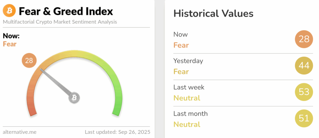 โดยปัจจุบันดัชนี Fear and Greed Index อยู่ที่ระดับ 28 คะแนน ใกล้เข้าสู่โซน “Extreme Fear” หรือภาวะหวาดกลัวสุดขีด ซึ่งนับเป็นครั้งแรกที่ตลาดกลับมาแตะระดับความกังวลนี้อีกครั้ง นับตั้งแต่เดือนเมษายน 2025 ช่วงที่กฎหมายภาษีนำเข้าของโดนัลด์ ทรัมป์ ถูกหยิบยกขึ้นมาพูดถึงอย่างกว้างขวาง และกลายเป็นปัจจัยกดดันตลาดในเวลานั้น