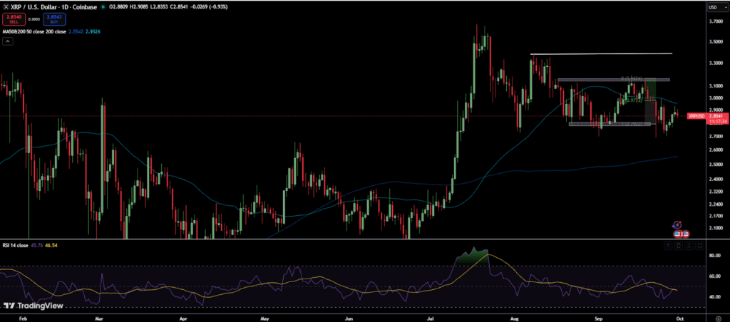 ในช่วงปิดไตรมาสที่สาม XRP แสดงพลังด้วยการปรับตัวขึ้น 28% ในรอบสามเดือน โดยซื้อขายใกล้ระดับราคา 2.86 ดอลลาร์ ซึ่งโครงสร้างราคาในตอนนี้ คล้ายกับช่วงปลายปี 2017 ที่ XRP เคยปิดแท่งไตรมาสสีเขียว ก่อนราคาจะวิ่งขึ้นกว่า 37,800% ภายในปีเดียว