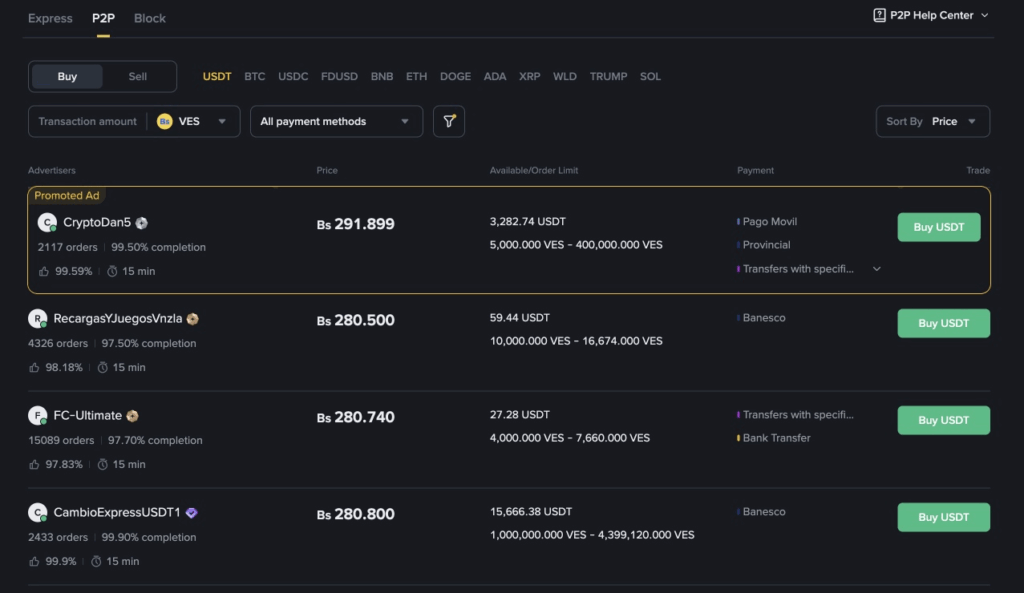 สำหรับคำว่า “dólares Binance” ที่ชาวเวเนซุเอลาใช้เรียกกันนั้น จริง ๆ แล้วมันไม่ใช่สกุลเงินใหม่แต่อย่างใด แต่เป็นคำที่เอาไว้ใช้เรียก Tether ( USDT) ซึ่งมีการซื้อขายกันบนเว็บเทรด Binance ผ่านช่องทาง P2P ที่กำลังได้รับความนิยมอย่างมากในปัจจุบัน ทั้งในกลุ่มร้านค้าและผู้ใช้งานทั่วไป