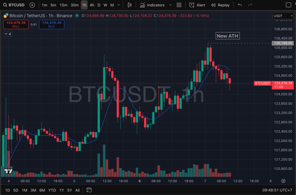 ในขณะที่รายงาน Bitcoin เริ่มมีการปรับตัวลงมาที่ 124,476 ดอลลาร์ แต่ยังคงเพิ่มขึ้น 0.3% ในช่วง 24 ชั่วโมงที่ผ่านมา ตามข้อมูลจาก CoinMarketCap
