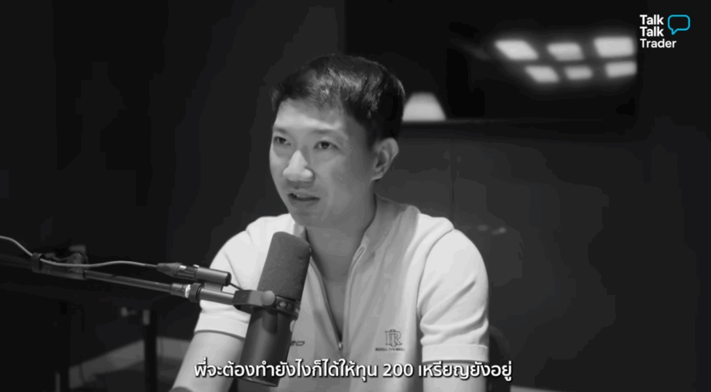 “โดยแบ่งเงินเอามาเทรดได้แค่ประมาณ 8000 บาท ถ้าตีเป็น USD ประมาณ 200 เหรียญ ซึ่งเป็นจุดเริ่มต้นของการจริงจังในเรื่องของการเทรด และการหาตัวตน การหาเทคนิคของตัวเอง”