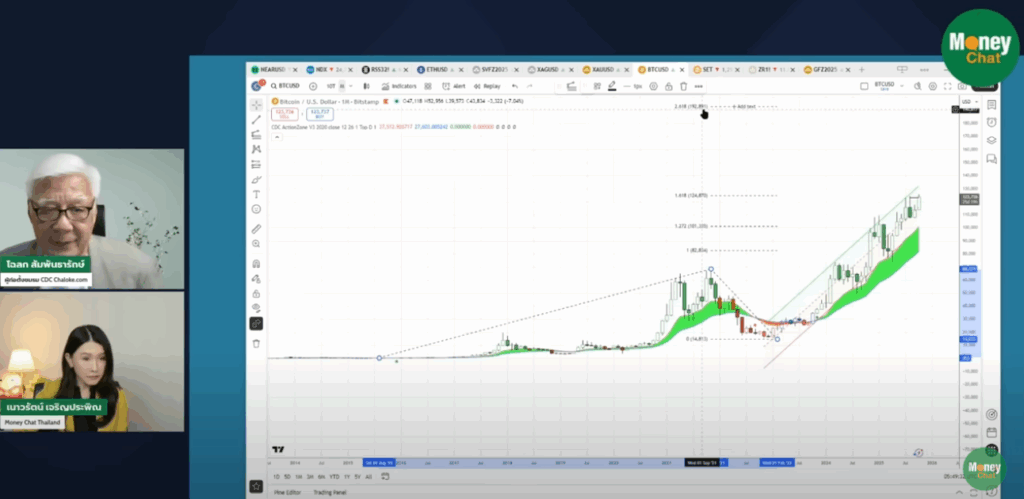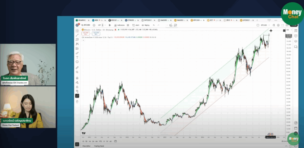 เมื่อผู้ดำเนินรายการถามต่อว่า “ถ้ามองจากตรงนี้ Bitcoin พยายามสร้างเชิงดอยอยู่ที่ระดับราคานี้ 125,000 ดอลลาร์ ถ้ามันสร้างได้ มันจะไปไกลมากเลย เท่าที่คุณลุงดู Technical 500 วัน ความแข็งแรงนี้มันจะไปไกลได้แค่ไหนคะ”