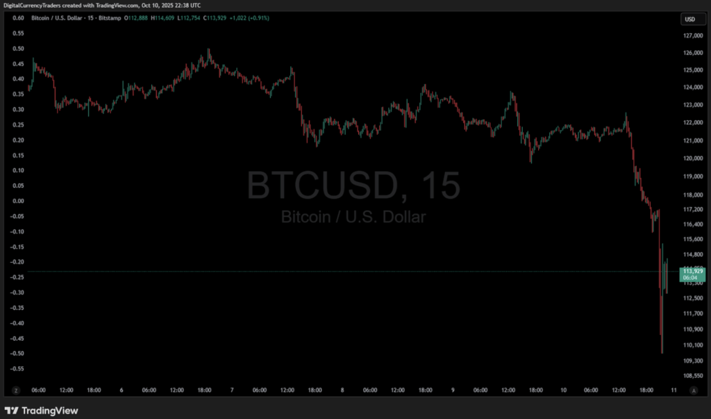 เหตุการณ์สำคัญที่ทำให้ตลาดตื่นตระหนกเกิดขึ้นเมื่อวันที่ 10 ตุลาคม เมื่อราคา Bitcoin ดิ่งลงจาก $122,000 มาแตะ $104,000 ภายในวันเดียว คิดเป็นการลดลง 17% พร้อมกับปริมาณการซื้อขายที่พุ่งสูงสุดในรอบหลายเดือนที่ 153 พันล้านดอลลาร์ แต่ราคาก็ฟื้นตัวกลับมาที่ $113,000 ได้อย่างรวดเร็ว