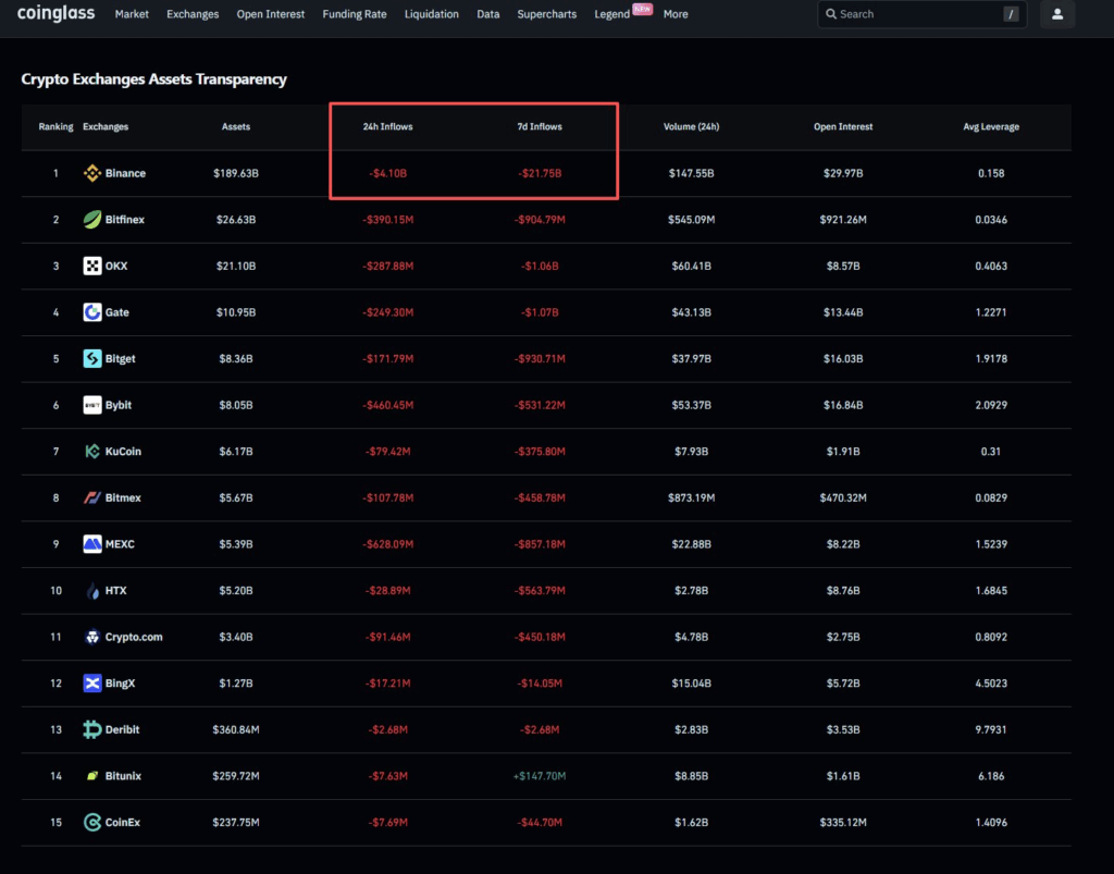 ซึ่งความไม่แน่นอนที่เกิดขึ้นอย่างต่อเนื่องในตลาด ได้ส่งผลให้นักลงทุนจำนวนมากเริ่ม ไม่มั่นใจ และทยอยถอนเงินออกจาก Binance โดยบันทึกยอดเงินไหลออกสูงสุดในรอบปีอยู่ที่ 21,750 ล้านดอลลาร์ ภายในระยะเวลาเพียง 7 วัน