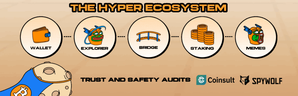 สำหรับผู้ที่เข้าร่วมโปรเจกต์ระดมทุนในช่วงเริ่มต้น กระบวนการนี้จะคุ้นเคยกันอยู่แล้ว คือ Bitcoin จะถูก เชื่อมต่อเข้าสู่เครือข่าย Bitcoin Hyper ซึ่งจะมีการสร้าง Wrapped Version ของ Bitcoin ขึ้นมา โดย Wrapped BTC นี้จะกลายเป็น สื่อกลางในการแลกเปลี่ยนหลัก ในแอปพลิเคชันลูกผสมมากมายที่ดำเนินการอยู่ภายในระบบนิเวศ
