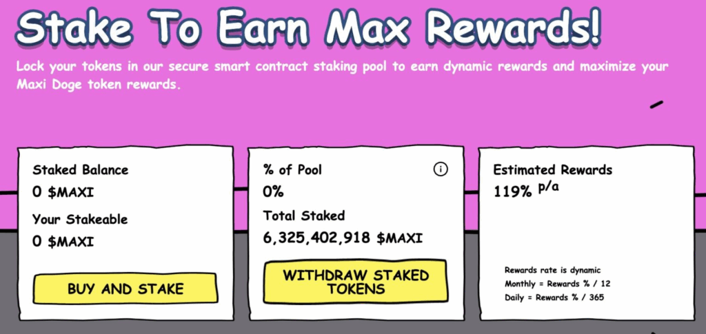 Maxi Doge ได้แสดงสัญญาณความน่าสนใจด้วยตัวเลขการระดมทุนล่วงหน้า (Presale) ที่สูงกว่า 2.89 ล้านดอลลาร์ และนำเสนอผลตอบแทนจากการ Staking ที่น่าดึงดูดถึง 119% ต่อปี การจัดสรรเหรียญที่ให้สาธารณชนโดยตรงถึง 40% โดยไม่มีการจัดสรรให้ผู้ลงทุนภายใน (Insider Allocation) ถือเป็นกลไกที่ช่วยสร้างความเป็นธรรมและลดความเสี่ยงจากการเทขายก้อนใหญ่