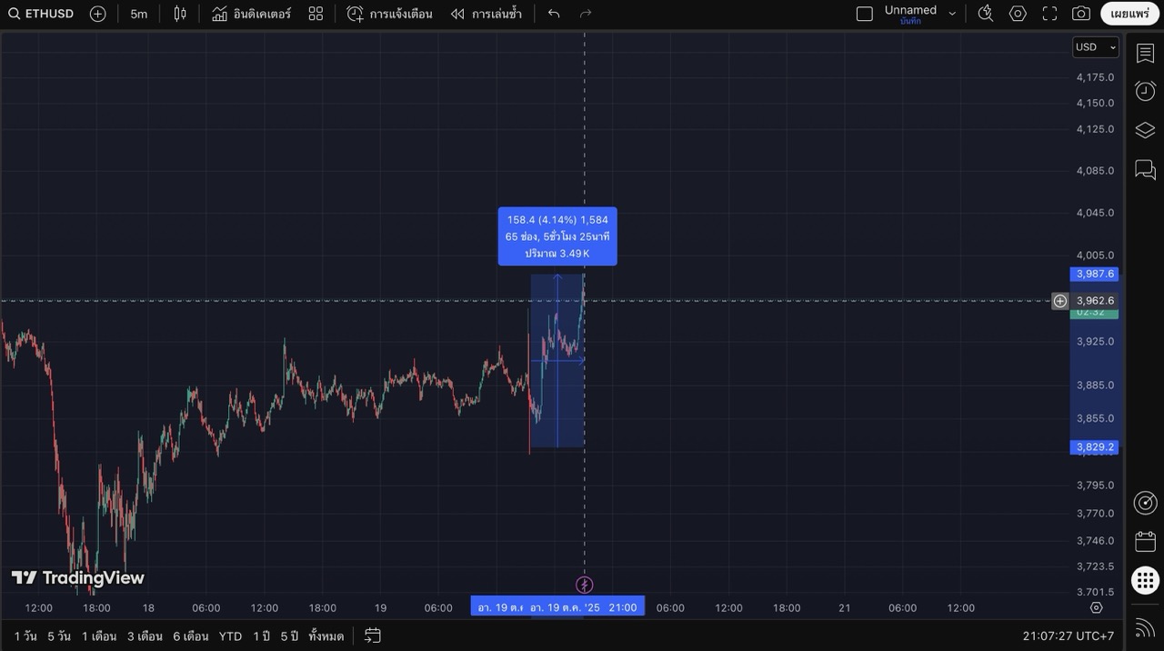 ราคาของ Ethereum พุ่งขึ้นอย่างรุนแรงกว่า 4% ภายในไม่กี่ชั่วโมงที่ผ่านมา ส่งผลให้ราคาเข้าใกล้ระดับสำคัญที่ 4,000 ดอลลาร์อีกครั้ง ซึ่งเป็นโซนแนวต้านสำคัญที่นักลงทุนกำลังจับตาอย่างใกล้ชิด