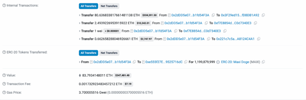 ในการทำธุรกรรมสองครั้งติดต่อกัน ผู้ซื้อรายนี้ได้กวาดโทเคน MAXI ไปรวมกัน 2.4 พันล้านโทเคน โดยแต่ละครั้ง เข้าซื้อไปประมาณ 1.19 พันล้านโทเคน คิดเป็นมูลค่าครั้งละประมาณ 347,000
