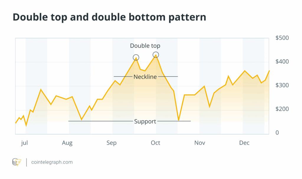 ถัดมาคือแพทเทิร์นขวัญใจนักลงทุนอย่าง Double tops (ลง) และ Double bottoms (ขึ้น) โดยตัวของ Double tops จะเป็นกราฟรูปตัวเอ็ม M ซึ่งปรากฏใกล้แนวต้าน แสดงให้เห็นถึงการกลับตัวเป็นขาลง ส่วน Double bottoms จะเป็นตัว W เกิดขึ้นใกล้แนวรับ ส่งสัญญาณกลับตัวเป็นขาขึ้น