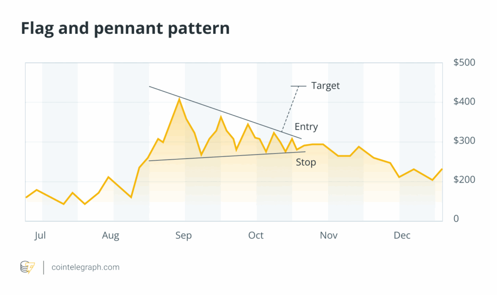 วิธีอ่าน: “เสาธง” ที่ชัน ตามด้วยการพักฐาน สั้นๆ บ่งชี้ว่าแนวโน้มมีแนวโน้มที่จะกลับมาดำเนินต่อ หากรูปแบบดังกล่าวปรากฏในช่วงขาขึ้นหมายถึงราคาจะไปต่อ แต่ถ้าพบในช่วงขาลงหมายความว่าราคาจะดิ่งตัว
