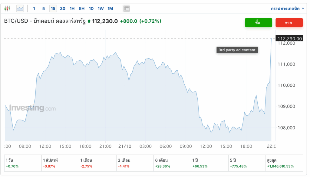 ราคา Bitcoin ($BTC) พุ่งขึ้นอย่างฉับพลันถึง $112,260 หรือกว่า 0.74% ภายในไม่กี่ชั่วโมงของการซื้อขายวันนี้ (21 ตุลาคม 2025) โดยมีสาเหตุหลักมาจากการประกาศเชิงนโยบายครั้งสำคัญจากธนาคารกลางสหรัฐฯ (Fed) ที่ส่งสัญญาณเปิดรับอุตสาหกรรมคริปโตและ DeFi เข้าสู่ระบบการเงินดั้งเดิม