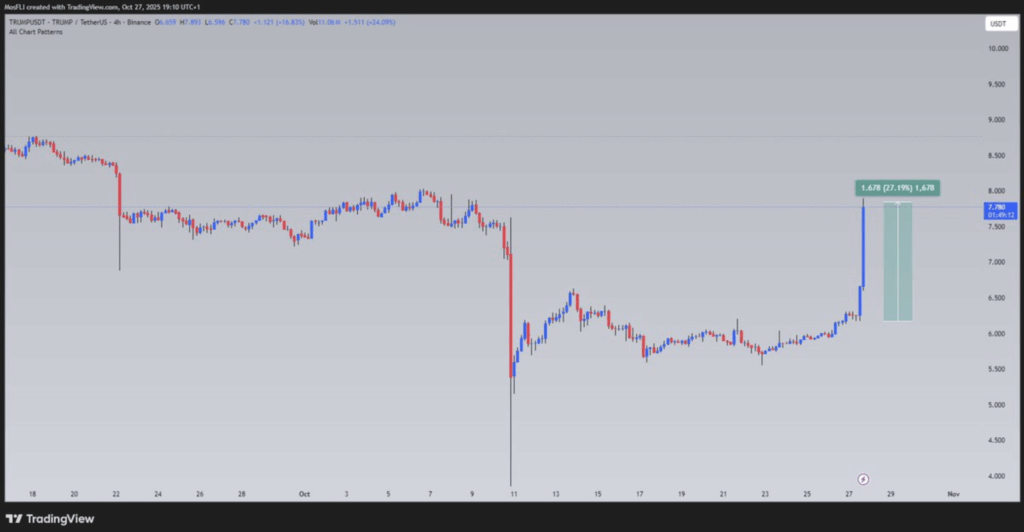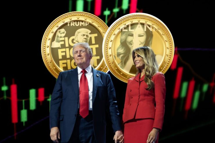 ตลาดคริปโตกลับมาคึกคักอีกครั้ง หลังเหรียญมีม Official Trump (TRUMP) พุ่งขึ้นเกือบ 30% แตะระดับ 8 ดอลลาร์ เมื่อคืนที่ผ่านมา ขณะที่เหรียญ MElANIA ของฝั่งภรรยา ก็ไม่น้อยหน้า พุ่งขึ้นกว่า 60% แตะ 0.15 ดอลลาร์ ก่อนที่ราคาจะร่วงลงในเวลาต่อมา