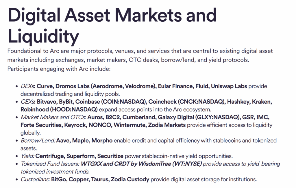 Circle เรียกการเปิดตัว Arc นี้ว่าเป็น “ระบบปฏิบัติการเศรษฐกิจบนอินเทอร์เน็ต” ซึ่งสะท้อนความทะเยอทะยานที่จะเป็นรากฐานทางการเงินยุคใหม่ ความน่าตื่นเต้นอยู่ตรงที่มีการดึงบริษัทการเงินยักษ์ใหญ่กว่า 100 แห่งเข้าร่วมทดสอบในครั้งนี้ ไม่ว่าจะเป็นขาใหญ่ในวอลล์สตรีทอย่าง BlackRock, Goldman Sachs, BNY Mellon, Deutsche Bank ไปจนถึงเครือข่ายการชำระเงินระดับโลกอย่าง Visa และ Mastercard