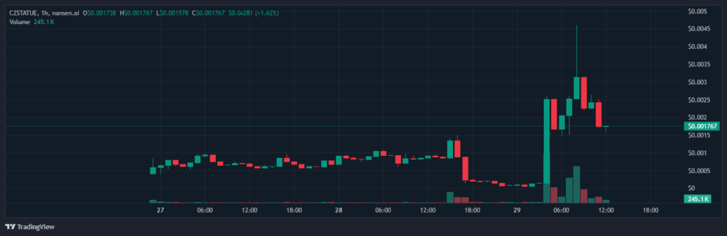 ราคาของเหรียญ CZ STATUE (CZ STATUE) ได้ร่วงลงอย่างรุนแรงถึง 86% ภายในเวลาไม่กี่ชั่วโมง หลังจากที่เคยพุ่งขึ้นไปทำมูลค่าตลาดสูงสุดที่ 5.10 ล้านดอลลาร์สหรัฐ เมื่อเวลาประมาณ 10:00 น. UTC ในวันพุธ ตามข้อมูลจากแพลตฟอร์มวิเคราะห์คริปโต Nansen