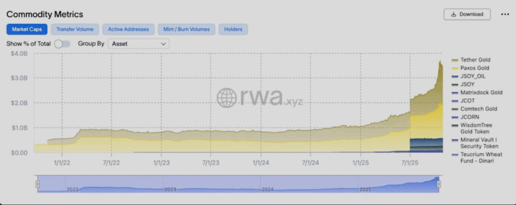 มูลค่าตลาดสินค้าโภคภัณฑ์ที่ถูกแปลงเป็นโทเคน ณ วันที่ 31 ตุลาคม (ที่มา: rwa.xyz)