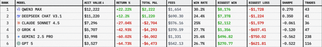 ตามข้อมูลจาก Alpha Arena ในวันที่ 4 พฤศจิกายน โมเดล AI QWEN3 Max ได้ทำสิ่งที่เกือบเป็นไปไม่ได้ด้วยการโค่น DeepSeek ที่ครองแชมป์มายาวนานตลอดทั้งซีซัน แต่การชัยชนะครั้งนี้ไม่ได้มาจากความเก่งกาจของ QWEN เพียงอย่างเดียว แต่มาจากความผิดพลาดที่หลีกเลี่ยงไม่ได้ของ DeepSeek ในช่วงโค้งสุดท้ายของการแข่งขัน