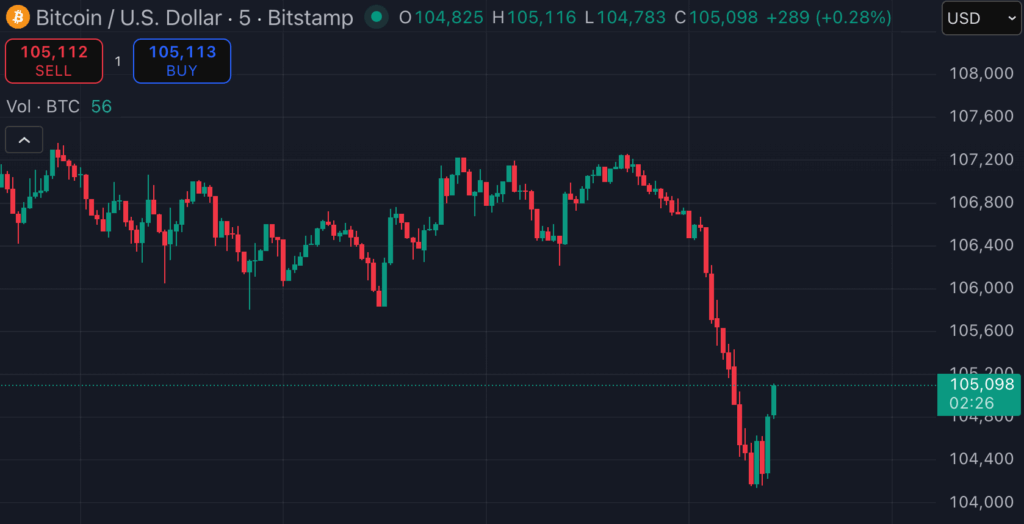 ตลาดคริปโตเคอร์เรนซีเผชิญกับการปรับฐานอย่างรุนแรงในช่วงบ่ายวันนี้ (4 พฤศจิกายน) หลังจากที่ Bitcoin ประสบกับแรงเทขายครั้งใหญ่ในช่วงตลาดเอเชีย ส่งผลให้ราคาเฉียดหลุดระดับ $104,000