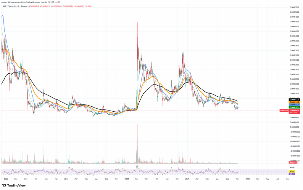 ซึ่งบนกราฟเทคนิค SHIB ยังเทรด “ต่ำกว่าเส้นค่าเฉลี่ย” ทั้ง 50 วัน, 100 วัน และ 200 วัน ถือเป็นสัญญาณคลาสสิกที่บอกว่า แรงขายยังครองตลาดอยู่เต็มตัว นับตั้งแต่ช่วงปลายฤดูร้อนที่ผ่านมา เส้นค่าเฉลี่ย 200 วัน ก็กลายเป็นเพดานราคาที่คอยกดการฟื้นตัวของ SHIB ทุกครั้ง