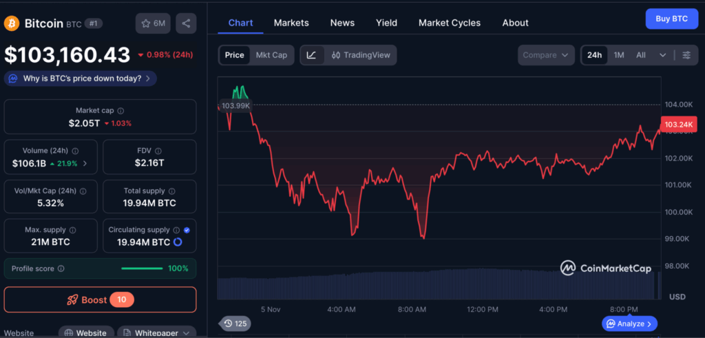 ราคา Bitcoin (BTC) กลับมาฟื้นตัวอย่างมีนัยสำคัญ โดยสามารถ ทะลุระดับ $103,000 ได้อีกครั้งในวันนี้ หลังจากที่ก่อนหน้านี้ได้ลดลงถึง 19% ท่ามกลางภาวะตลาดที่ซบเซาและปัจจัยภายนอกที่กดดัน