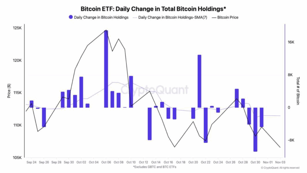 ข้อมูลเพิ่มเติมจากตลาดสหรัฐฯ ระบุว่า เงินกำลังไหลออกจากกองทุน Bitcoin ETF อย่างต่อเนื่อง ขณะที่ราคาพรีเมียมของ BTC บน Coinbase มีค่าติดลบ ส่งสัญญาณว่า ตลาดคริปโตอยู่ในภาวะขาลง มาตั้งแต่ต้นเดือนตุลาคม