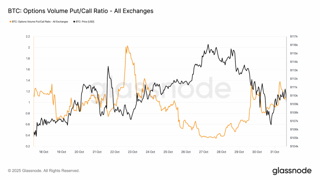 Glassnode เผยว่าความกลัวยังคงเป็นแรงผลักดันสำคัญในตลาดออปชัน โดยอัตราส่วน Put-Call นั้นแสดงให้เห็นว่านักลงทุนกำลังเน้นไปที่การป้องกันความเสี่ยงจากการเคลื่อนไหวระยะสั้นมากกว่าการเชื่อมั่นในการกลับตัวเป็นขาขึ้นอย่างแท้จริง และคาดว่าตลาดจะมีการทดสอบซ้ำแนวรับเพิ่มเติม