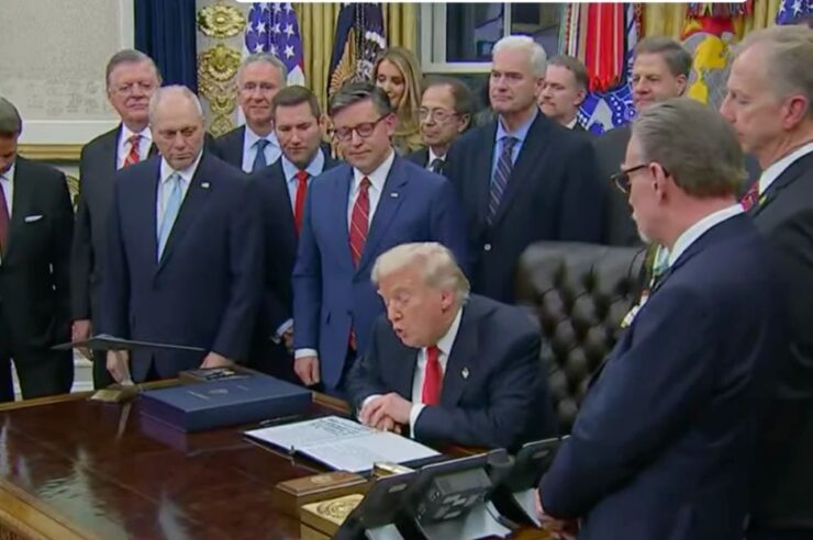มีรายงานว่า ทรัมป์เปลี่ยนกำหนดการจากงานเลี้ยงส่วนตัว มาเป็นการเซ็นลงนามร่างกฎหมายงบประมาณต่อหน้าสื่อ พร้อมอนุญาตให้นักข่าวถ่ายทอดสดภาพจากห้องทำงานรูปไข่ เพื่อที่จะทำให้เห็นว่า “ภาวะชัตดาวน์” ที่สร้างความโกลาหลทางเศรษฐกิจและการบริหารประเทศครั้งใหญ่ที่สุดในรอบหลายสิบปี ได้สิ้นสุดลงแล้วอย่างเป็นทางการ