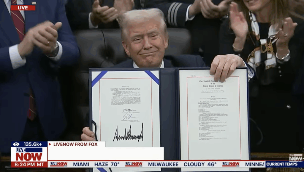 กำหนดการลงนามครั้งนี้ เกิดขึ้นทันทีหลังจากสภาผู้แทนราษฎรผ่านร่างกฎหมายด้วยคะแนน 222 ต่อ 209 และได้รับความเห็นชอบจากวุฒิสภาเรียบร้อย ถือเป็นจุดจบของภาวะชัตดาวน์ที่สร้างผลกระทบต่อทั้งเศรษฐกิจและชีวิตชาวอเมริกัน