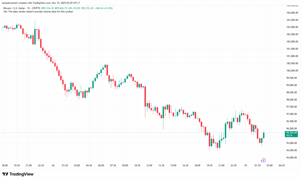 ราคา Bitcoin ดิ่งลงต่ำกว่า $95,000 ในวันศุกร์ แตะระดับ $94,491.22 ซึ่งเป็นจุดต่ำสุดนับตั้งแต่วันที่ 7 พฤษภาคม ก่อนจะฟื้นตัวขึ้นมาเล็กน้อยเหนือระดับ $95,000