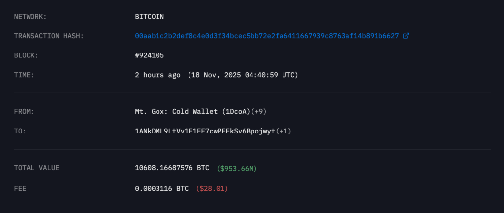 Arkham Intelligence แพลตฟอร์มวิเคราะห์ข้อมูลชั้นนำ ได้รายงานความเคลื่อนไหวล่าสุดของเว็บเทรดคริปโตที่ล่มสลายไปแล้วอย่าง Mt.Gox โดยพบว่ามีการโอนย้าย Bitcoin มูลค่ารวมกว่า $956 ล้านดอลลาร์ ออกจากกระเป๋าเงิน Wallet