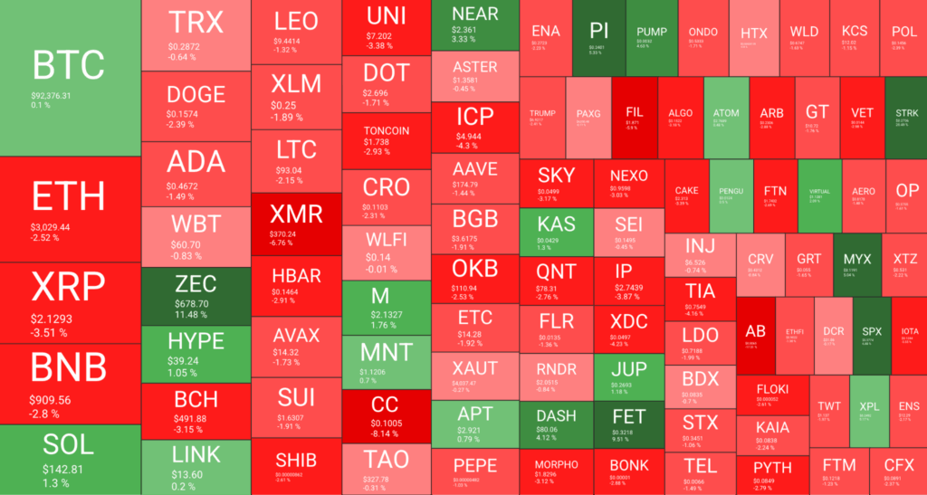 ในส่วนของ Altcoin ยังคงอยู่ในโซนติดลบเป็นส่วนใหญ่และยังคงไม่ฟื้นตัวกลับไปยืนเหนือระดับราคาก่อนหน้า ทว่าบางโปรเจกต์ได้แสดงศักยภาพอันโดดเด่นออกมาเช่นกัน อย่าง Zcash (ZEC) ที่เกือบกลับไปแตะ $700 และ Starkney (STRK) ที่พุ่งวันเดียวสวนตลาด 20%