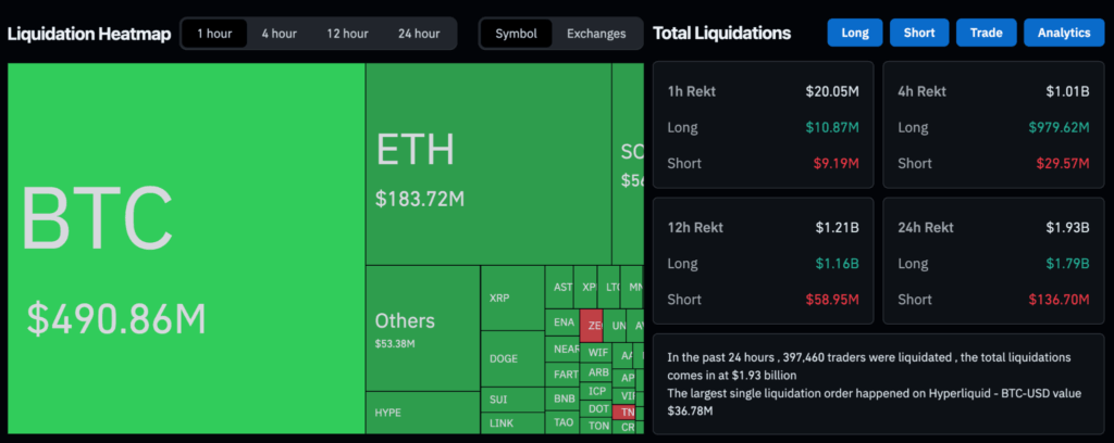 ขณะเดียวกันข้อมูลจาก Coinglass เผยให้เห็นว่าการล้างพอร์ตในครั้งนี้ส่วนใหญ่เกิดขึ้นบนแพลตฟอร์ม Bybit เป็นตัวเลขความเสียหายประมาณ $618 ล้าน ตามด้วย Hyperliquid และ Binance