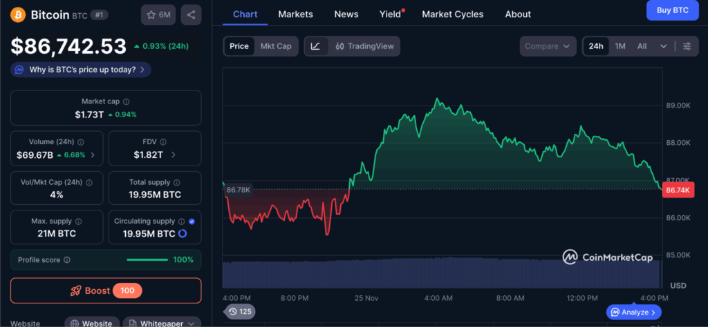 ปัจจุบันราคา Bitcoin (BTC) มีการซื้อขายอยู่ที่ $86,742 เพิ่มขึ้นเพียง 0.93% ใน 24 ชั่วโมงผ่านมา แต่บรรดานักวิเคราะห์ยังคงแสดงท่าทีระมัดระวัง