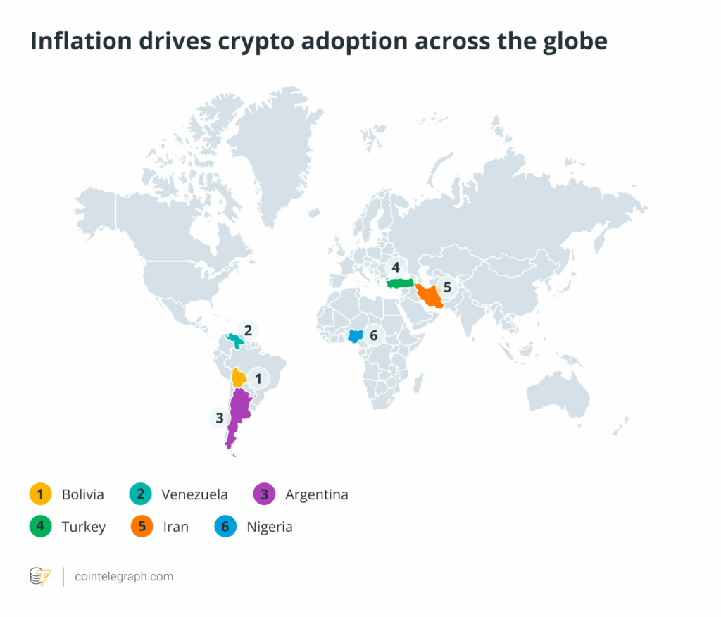 แม้ภาพรวมอัตราเงินเฟ้อทั่วโลกจะเริ่มส่งสัญญาณชะลอตัวลงหลังจากธนาคารกลางหลายแห่งงัดมาตรการทางการเงินมาใช้อย่างเข้มข้น แต่ในหลายมุมของโลกที่ระบบการเงินท้องถิ่นล้มเหลวและหมดความน่าเชื่อถือ “คริปโตเคอร์เรนซี” ได้แปรสภาพจากสินทรัพย์เก็งกำไรกลายเป็นทางรอดสุดท้ายในการปกป้องเงินออม
