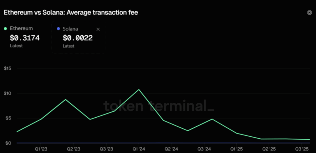 แม้ Ethereum จะครองความได้เปรียบเรื่องความเชื่อมั่นจากสถาบัน และการกระจายศูนย์ที่ผ่านบททดสอบมาอย่างยาวนาน แต่ปฏิเสธไม่ได้ว่า Solana ได้สร้างจุดยืนที่แข็งแกร่งในฐานะเชนที่ถูกที่สุดและเร็วที่สุด โดยเฉพาะในช่วงวัฏจักร Memecoin Supercycle ที่รายย่อยที่มีทุนน้อยก็สามารถเข้ามาเทรดได้ ในขณะที่ Ethereum เคยมีค่าธรรมเนียมสูงลิ่ว