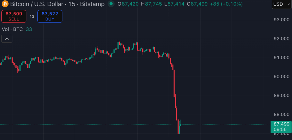 นักลงทุนหนาวสั่น!  Bitcoin ร่วงดิ่งหลุด $87,000 เปิดต้นเดือนธันวาคมอย่างย่ำแย่