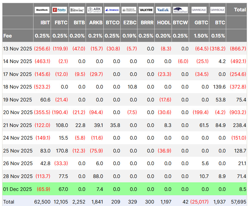สถานการณ์ของกระแสเงินทุนก็เริ่มส่งสัญญาณบวกสอดคล้องกัน แม้เดือนพฤศจิกายนที่ผ่านมาจะเป็นฝันร้ายของ Bitcoin ETF ด้วยยอดเงินไหลออกสุทธิกว่า 3.48 พันล้านดอลลาร์ แต่ล่าสุดทิศทางของเงินเริ่มเปลี่ยน เมื่อกองทุนต่างๆ มียอดไหลเข้าติดต่อกันถึง 4 วันติด บ่งชี้ว่า ความเชื่อมั่นกำลังฟื้นตัว