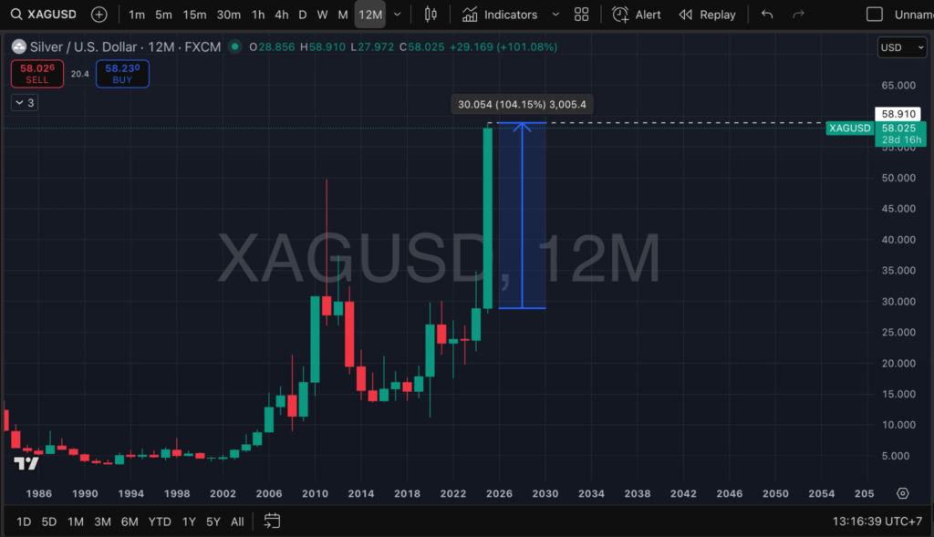 ข้อมูลล่าสุดระบุว่า ราคาแร่เงินดีดขึ้นทำสถิติสูงสุดใหม่ที่ 58.91 ดอลลาร์ต่อทรอยออนซ์ในช่วงต้นเดือนธันวาคม คิดเป็นการเพิ่มขึ้นกว่า 104% นับตั้งแต่ต้นปี 2025 ปรากฏการณ์ครั้งนี้ ทำให้ตลาดต้องหันมาประเมินใหม่ถึงบทบาทของแร่เงินในฐานะสินทรัพย์ปลอดภัยยุคใหม่