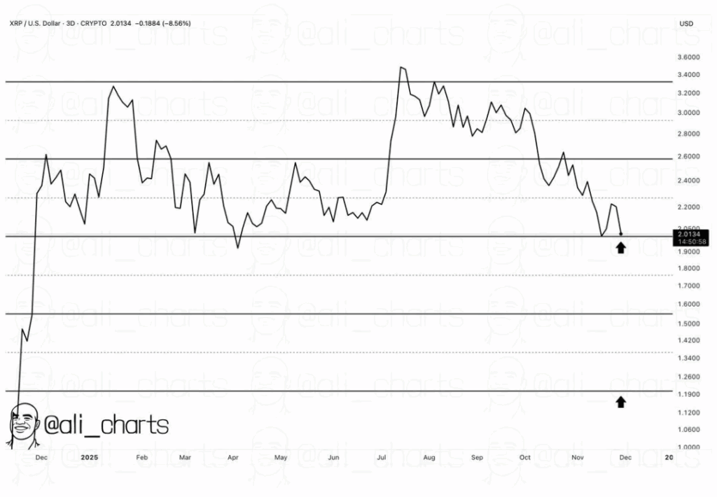 ด้าน Ali Martinez นักวิเคราะห์ชื่อดังประเมินว่า สถานการณ์ปัจจุบันเป็นการปรับฐานเพื่อล้างเลเวอเรจมากกว่าการทำลายโครงสร้างแนวโน้มขาขึ้น โดยจุดชึ้วัดสำคัญคือ หากราคา XRP ทะลุยืนเหนือ $2.20 ได้ จะมีโอกาสขึ้นไปทดสอบแนวต้านถัดไปที่ $2.40 ในทางกลับกันหากราคาหลุด $2.00 อาจมีความเสี่ยงลงไปทดสอบโซนสะสมที่ $1.20–$1.80 แทน