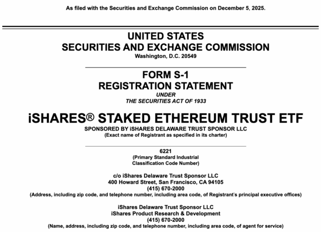 เมื่อวันที่ 5 ธ.ค.ที่ผ่านมา BlackRock กองทุนที่บริหารทรัพย์สินอยู่มากที่สุดในโลก ได้ทำการยื่นแบบฟอร์ม S-1 ต่อหน่วยงาน ก.ล.ต. สหรัฐฯ (SEC) เพื่อขอเปิดตัว “iShares Staked Ethereum Trust ETF ” (ETHB) กองทุน ETF ตัวใหม่ที่จะถือครอง Ethereum พร้อมรับผลตอบแทนจากการ Staking ผ่าน Validator ที่ได้รับการรับรอง