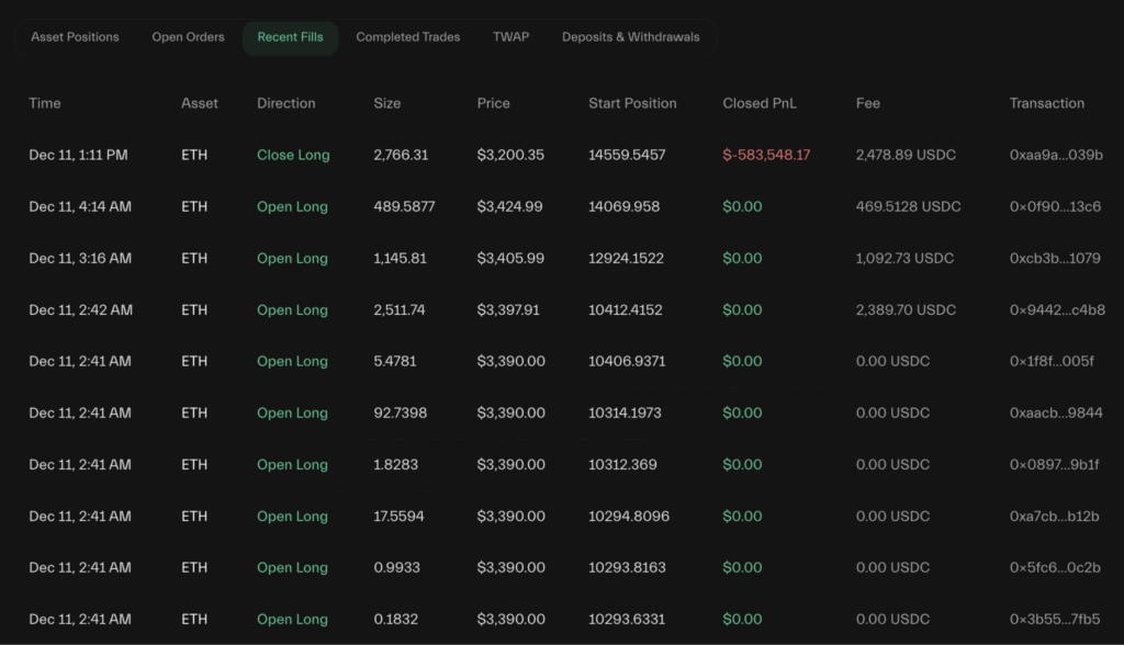 ภาพธุรกรรมของ long ของเขาเมื่อวันที่ 11 ธันวาคม 2025