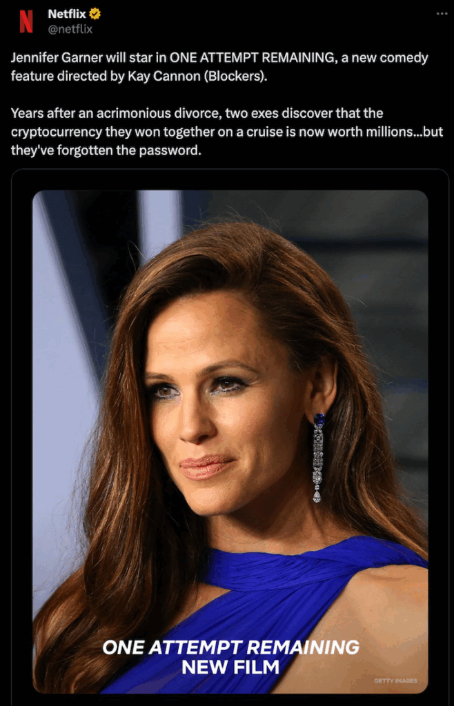 สำหรับเรื่องย่อของภาพยนต์ดังกล่าวจะเกี่ยวกับ คู่รักที่หย่าร้างกันได้ทราบว่า คริปโตที่พวกเขาเคยบังเอิญได้มาด้วยกัน ปัจจุบันมีมูลค่าเพิ่มขึ้นเป็นหลายล้านดอลลาร์ และพวกเขามีเวลาจำกัดในการกู้คืนรหัสผ่านก่อนที่จะสูญเงินทั้งหมดไป