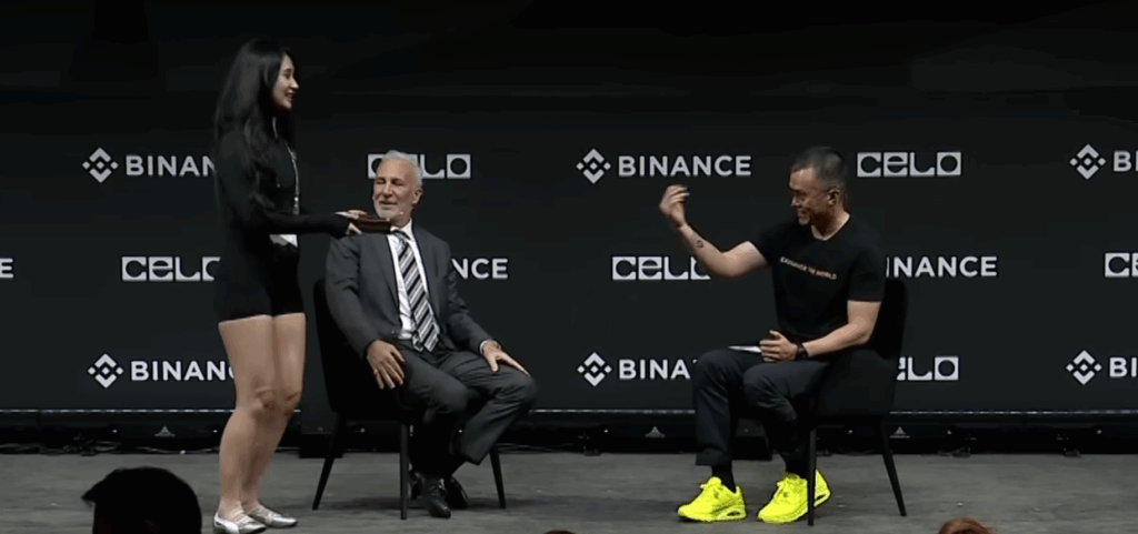 ย้อนกลับไปเมื่อวันที่ 4 ธันวาคม CZ ได้ขึ้นเวทีดีเบตกับ Peter Schiff กูรูทองคำและนักวิจารณ์ Bitcoin ซึ่งช่วงหนึ่งของการสนทนา CZ ได้เชิญ Tintin ผู้ซึ่งเป็นอินฟลูเอนเซอร์ที่มีความเกี่ยวข้องกับโปรเจกต์ Aster ขึ้นมาบนเวที
