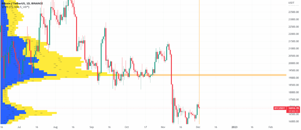 3. Volume Profile (VPVR – Volume Profile Visible Range) เป็น Built-in Indicator ที่ใน TradingView ที่หลายคนมองข้าม แต่นักเทรดโปรใช้กันเป็นประจำ ไปที่เมนู Indicators แล้วเลือก “Volume Profile Visible Range” อินดิเคเตอร์นี้จะแสดงให้เห็นว่ามีปริมาณการซื้อขายหนาแน่นอยู่ที่ราคาไหน Point of Control (POC) คือราคาที่มี Volume สูงสุด มักเป็นโซน Support/Resistance ที่แข็งแกร่ง ส่วน Value Area คือช่วงราคาที่มี Volume 70% ของทั้งหมด นักเทรดใช้ VPVR เพื่อหาโซนที่ราคามักจะมี Reaction และวางแผน Entry/Exit ได้แม่นยำขึ้น